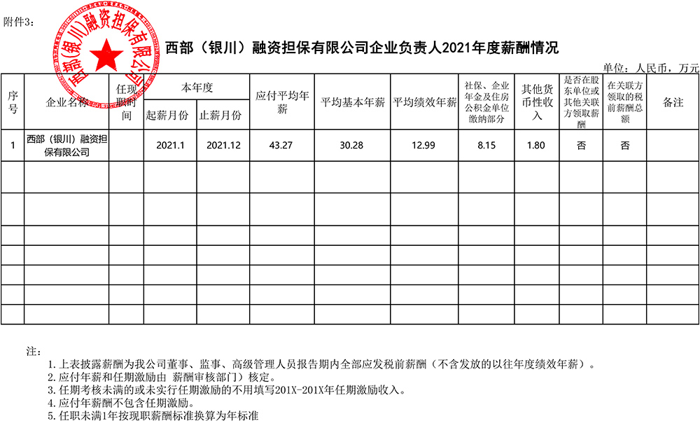 西部(銀川)融資擔保有限公司企業(yè)負責人2021年度薪酬情況