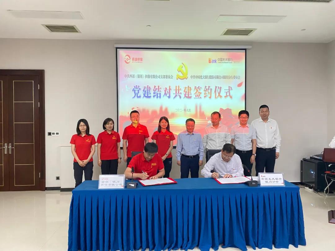 為進(jìn)一步加強(qiáng)銀擔(dān)合作,構(gòu)建“資源共享、優(yōu)勢互補(bǔ)、共贏發(fā)展”的黨建工作新格局,西部擔(dān)保黨支部與光大銀行銀川分行黨委簽署了《黨建結(jié)對共建協(xié)議書》、《廉潔伙伴協(xié)議書》,旨在進(jìn)一步發(fā)揮黨建引領(lǐng)作用,鞏固深化銀擔(dān)戰(zhàn)略合作關(guān)系,攜手共創(chuàng)合作共贏發(fā)展新篇章。