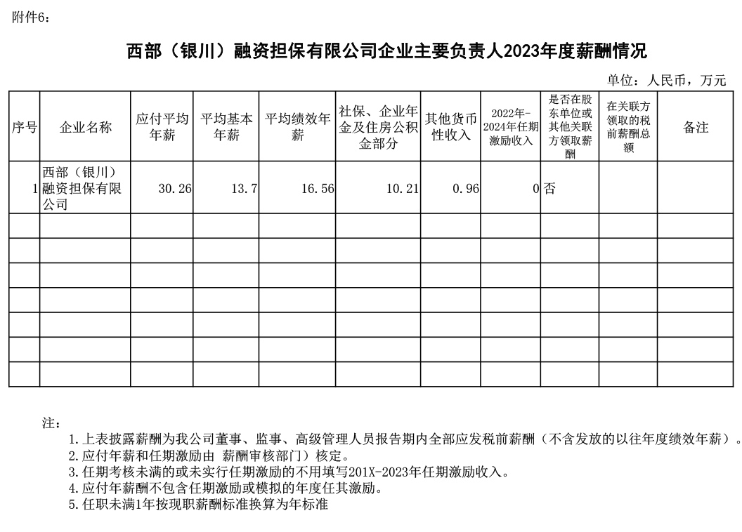 西部(銀川)融資擔保有限公司企業(yè)負責人2023年度薪酬情況